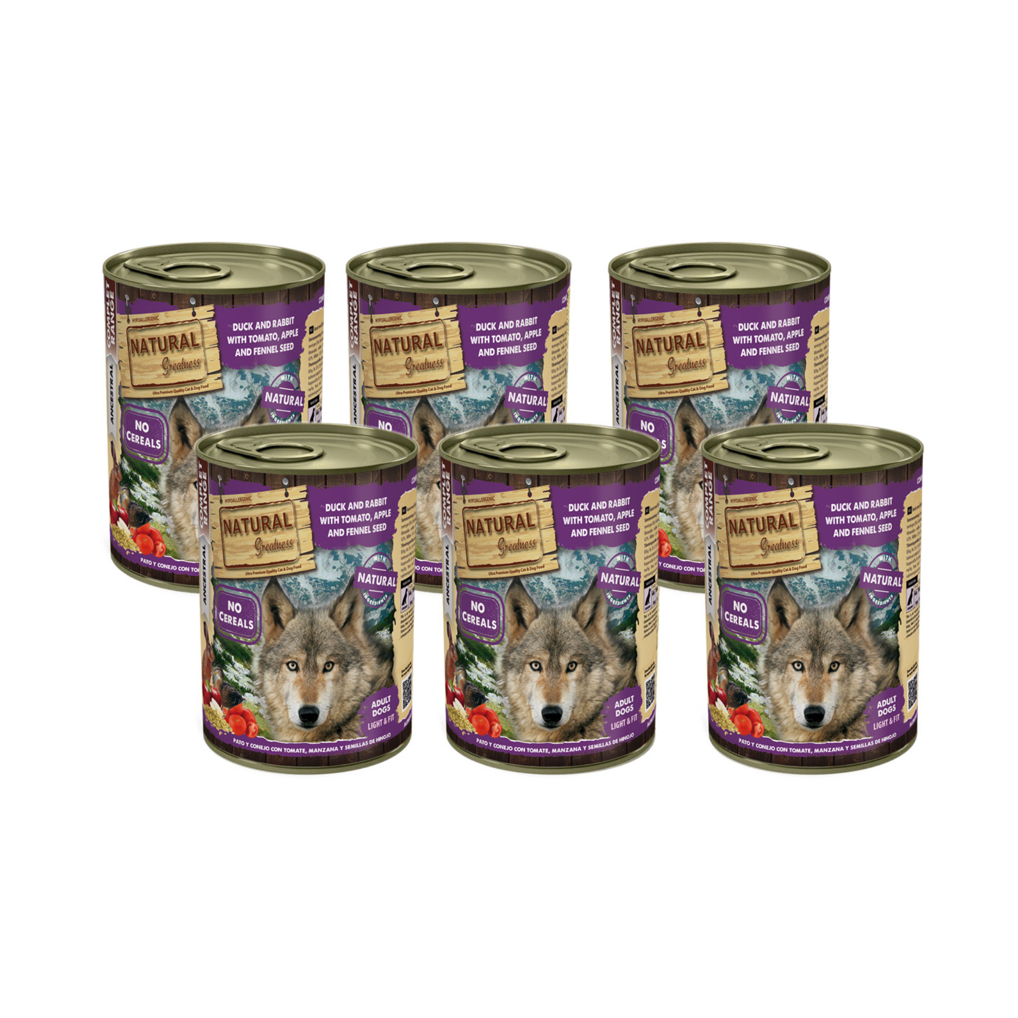 Natural Greatness – Pato y Conejo con Tomate, Manzana y Semillas de Hinojo | Comida húmeda natural completa para perros