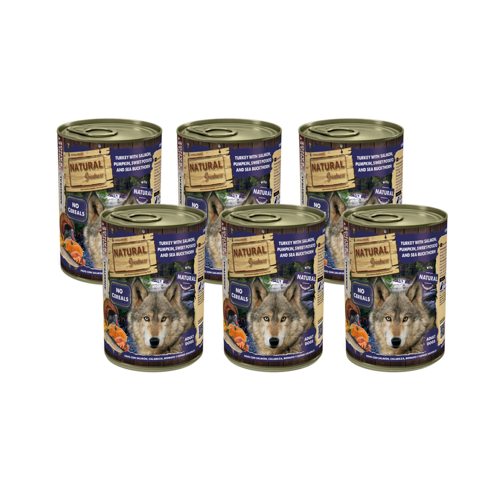 Natural Greatness – Pavo con Salmón, Calabaza, Boniato y Espino Amarillo | Comida húmeda natural completa para perros