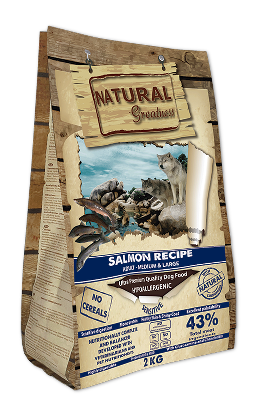 Natural Greatness – Receta de Salmón (Salmon Recipe) | Pienso natural ultra premium sin cereales para perros